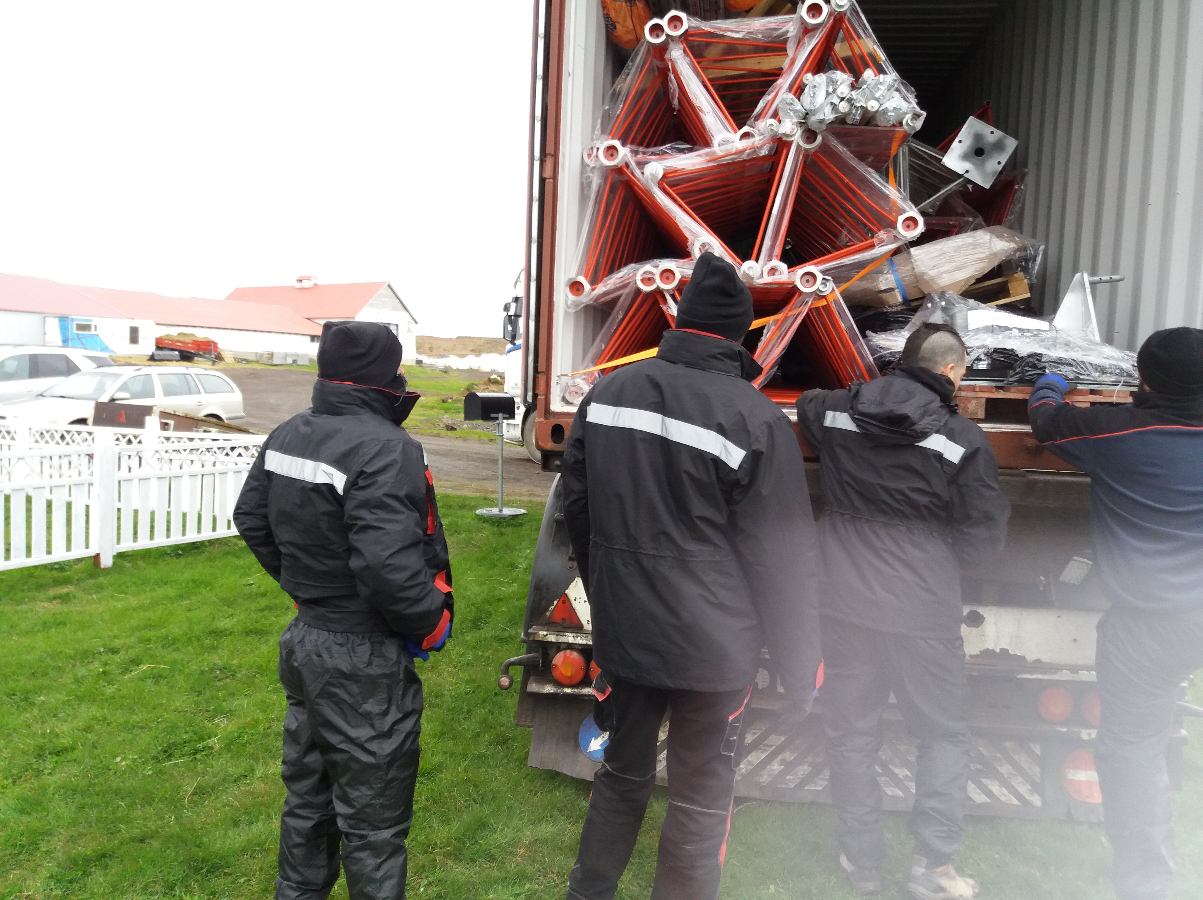 Flutningabílar með tveimur 40 feta gámum renndu í hlað hér að Hróðnýjarstöðum mánudaginn 13. maí. Gámarnir innihalda tvö mælingamöstur sem reist verða á næstu vikum. Tilgangur og verkefni mælingamastranna er að sannreyna og staðfesta upplýsingar sem Storm Orka hefur aflað varðandi vindstyrk, vindgæði o.þ.h. Áætlað er að mælingamöstrin safni upplýsingum í að minnsta kosti eitt ár, jafnvel tvö.
